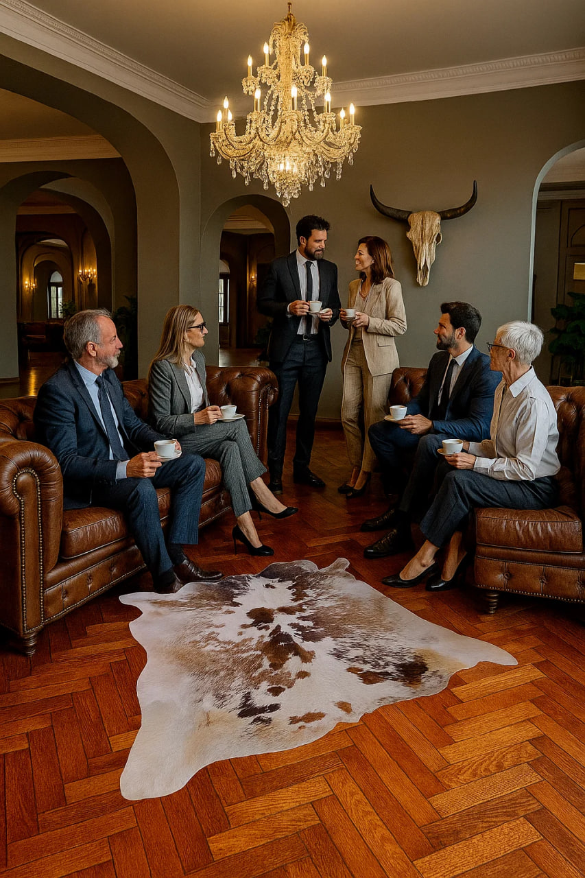 «یکتکه، طبیعی، تکرارنشدنی!» «پوست گاو طبیعی با طرح خاص – همین امروز انتخاب کن!» «خانهتو با لمس طبیعت لوکس کن!» «پوست گاو سمینتال»