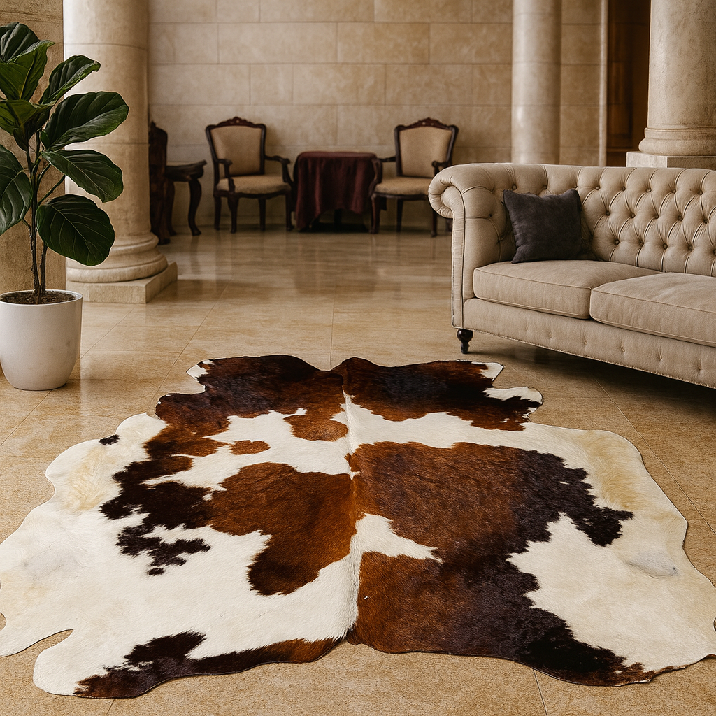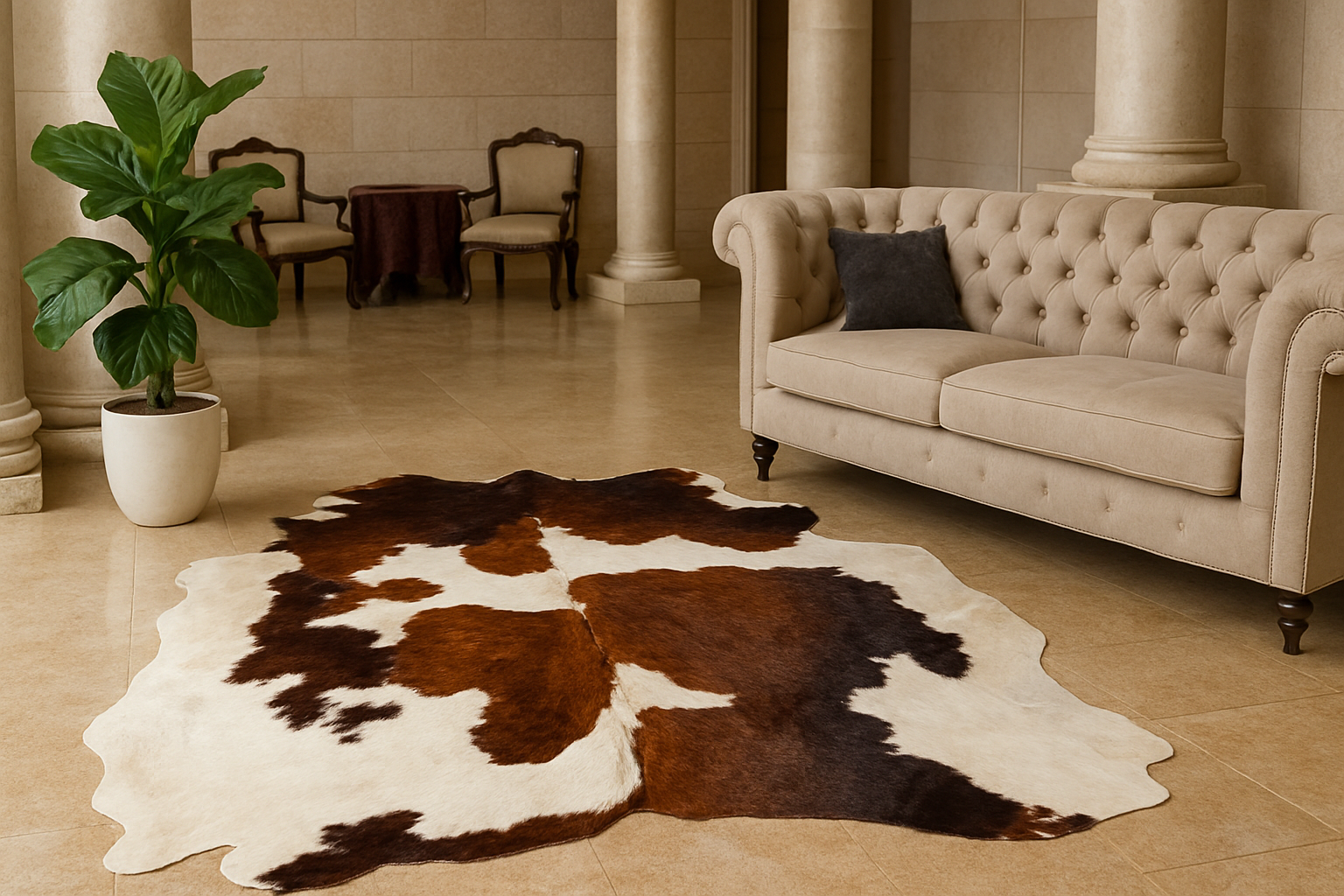 نقشهای طبیعی و تضاد رنگی جذاب، پوست گاو را به یک نقطه کانونی (Focus Point) در دکور تبدیل میکند.